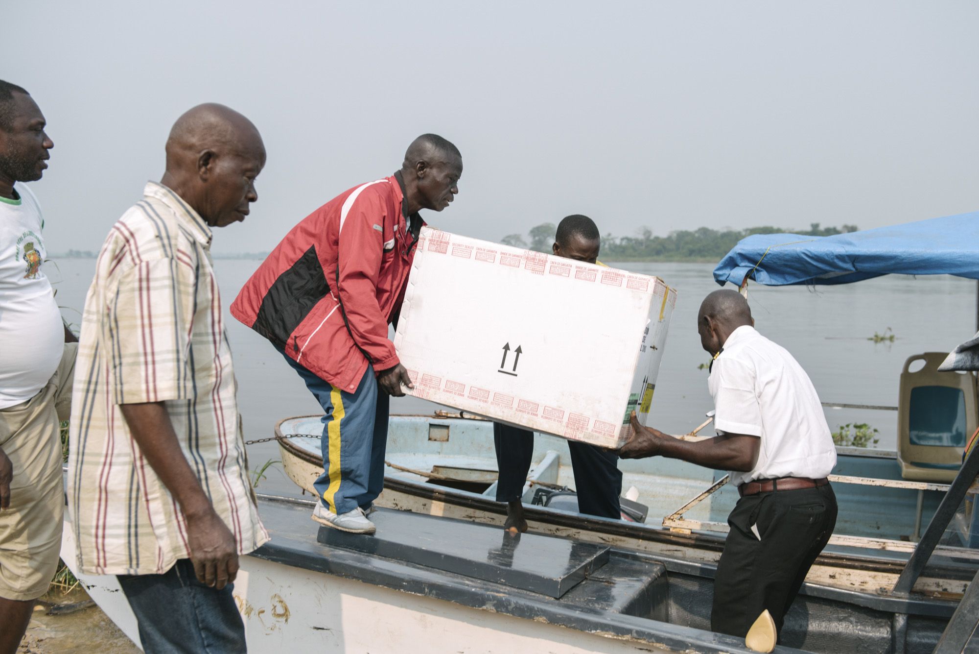 NECTを収容した大きな扱いにくい箱をキンシャサからコンゴ民主共和国の人里離れた地に輸送する必要があります。そのためには、ボートから川岸を遡り、奥地まで長い距離を運ばなければならないことも多くあります。そして患者は10日間入院し、毎日点滴を受けなければならないのです。