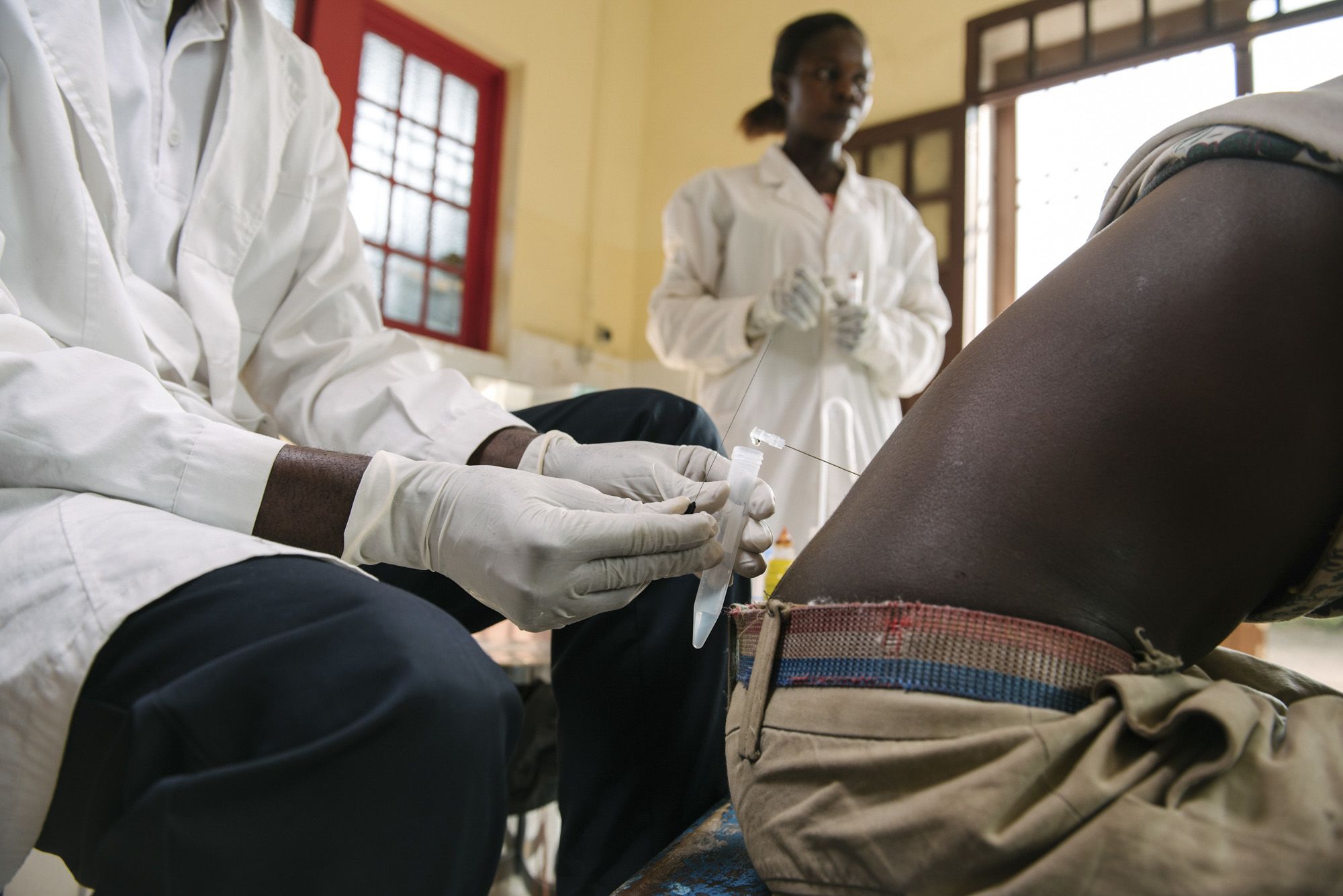 ただし、2人の患者はまず「腰椎穿刺(ようついせんし)」という医療処置を受けなければなりません。これは、アフリカ睡眠病の診断において非常に重要な検査です。というのも、病気が「後期」に進行しているかどうかを判断するには、脳脊髄液を採取して、寄生虫が中枢神経に入り込んでいないかを調べる必要があるからです。レオンは、患者の不安を和らげるように準備を整えながら、こう語りました。「患者に痛みを伴う処置をするのは、やはり心苦しいです。でも、腰椎穿刺をしなければ正しい診断も治療もできないことを、きちんと説明しています。」
