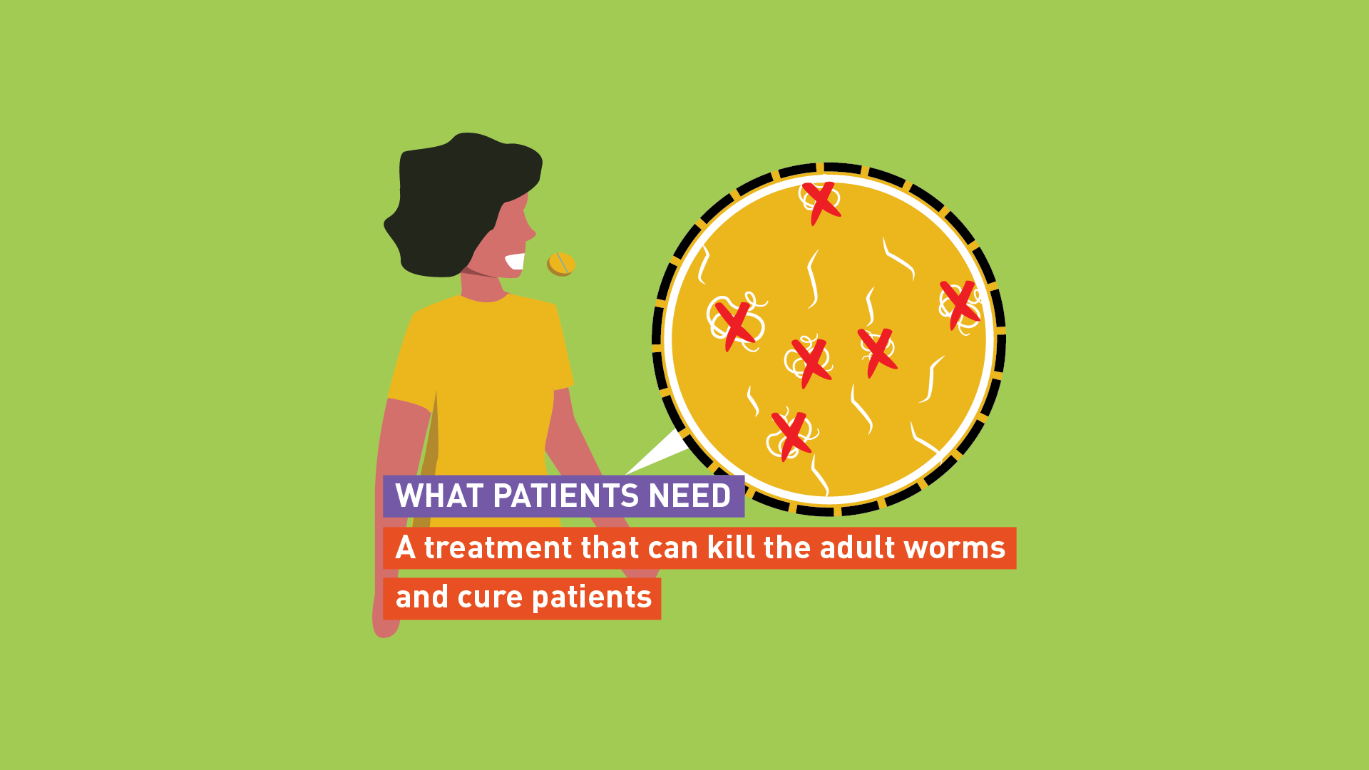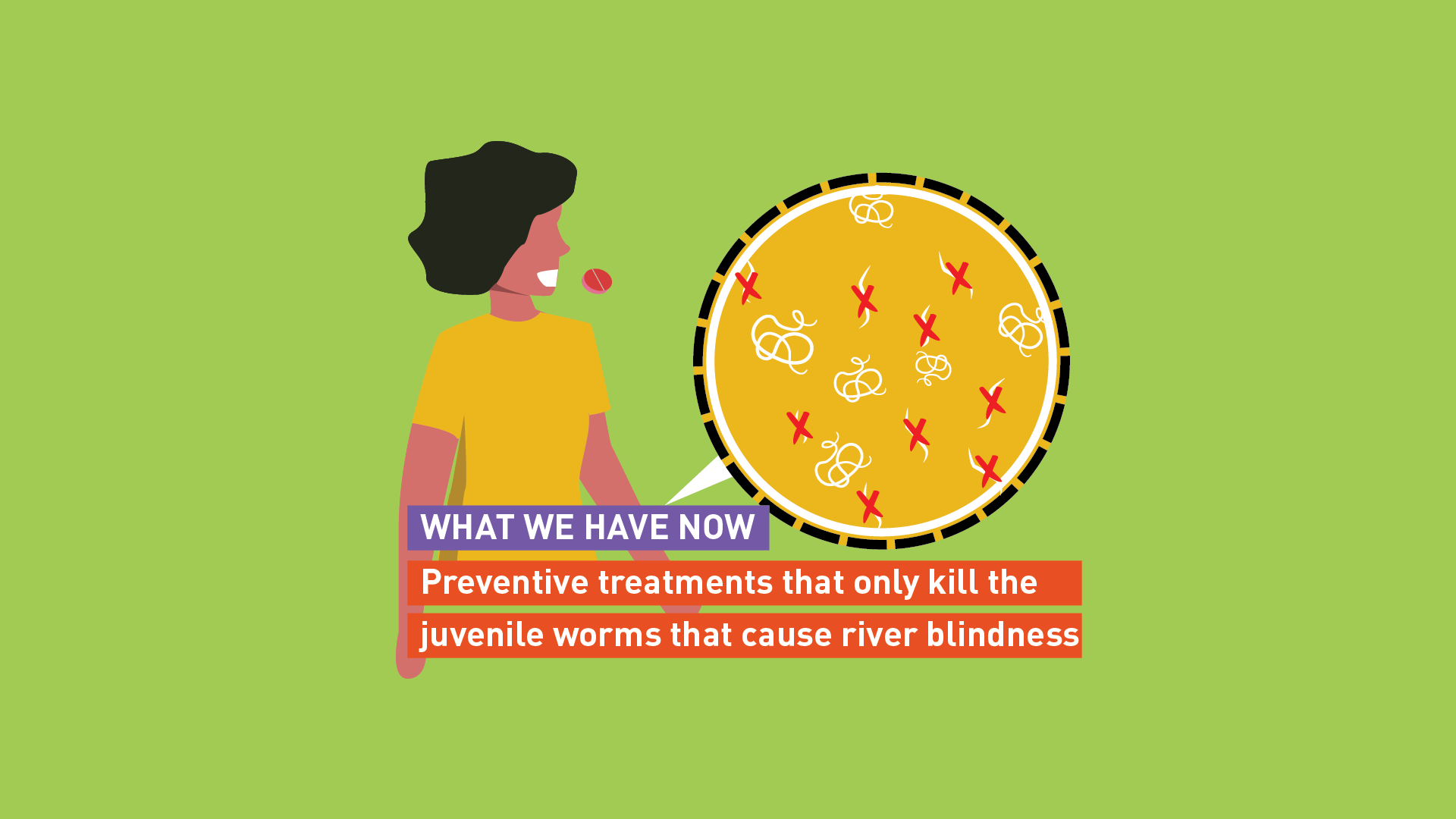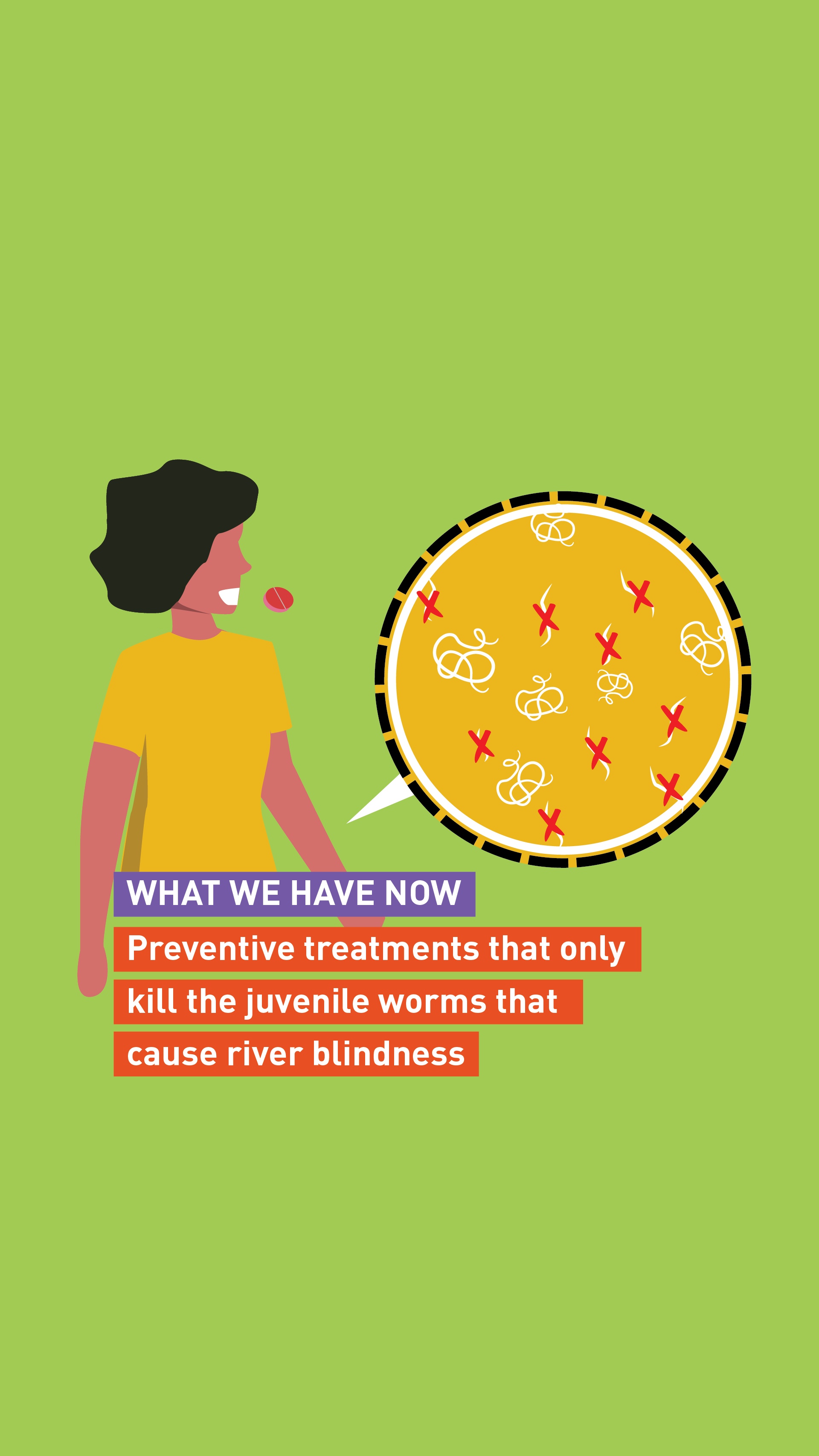 It also cannot be used in people infected with another worm, African eye worm, because of the risk of potentially fatal side effects. New tools that permanently sterilize or kill the adult worms are needed to support elimination of the disease.