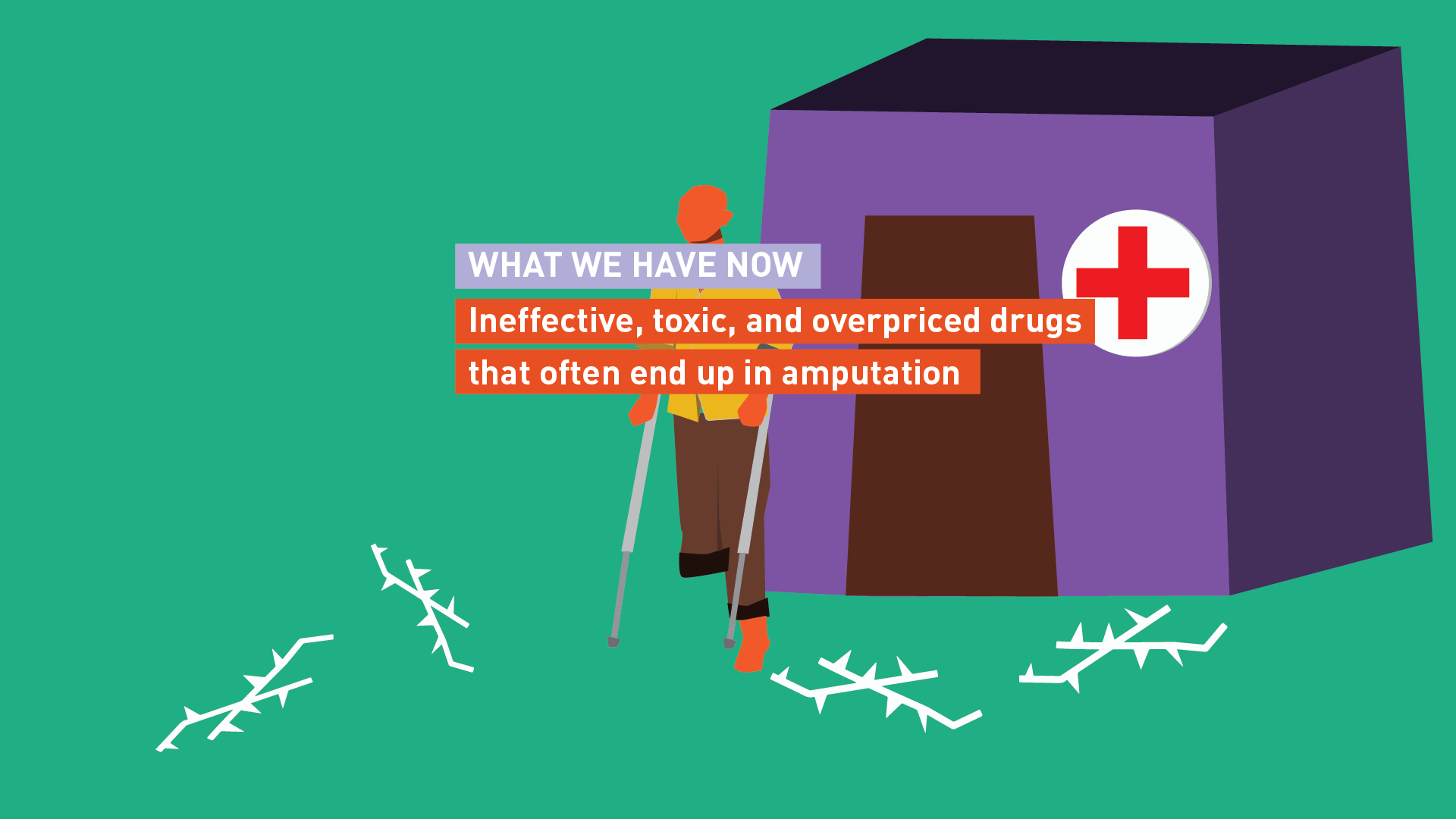 Current treatments are more than 60 years old, costly, and often require weeks of painful injections of toxic drugs called antimonials, which have severe side effects